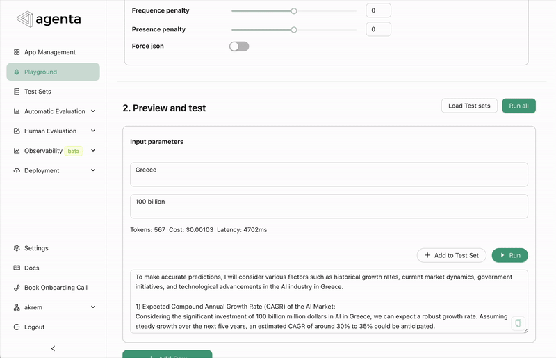 With Agenta's playground, implementing structured outputs is straightforward: